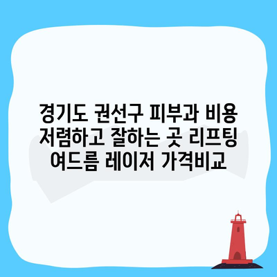 질문. 경기도 권선구에서 리프팅과 여드름 레이저 시술을 저렴하게 잘하는 피부과를 찾고 있는데, 어떤 곳을 추천해주시나요?