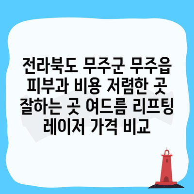 전라북도 무주군 무주읍에서 피부과를 찾고 계신가요? 여드름, 리프팅, 레이저 치료 등 다양한 피부 고민을 해결할 수 있는 곳이 많지만, 비용 또한 중요한 요소입니다.